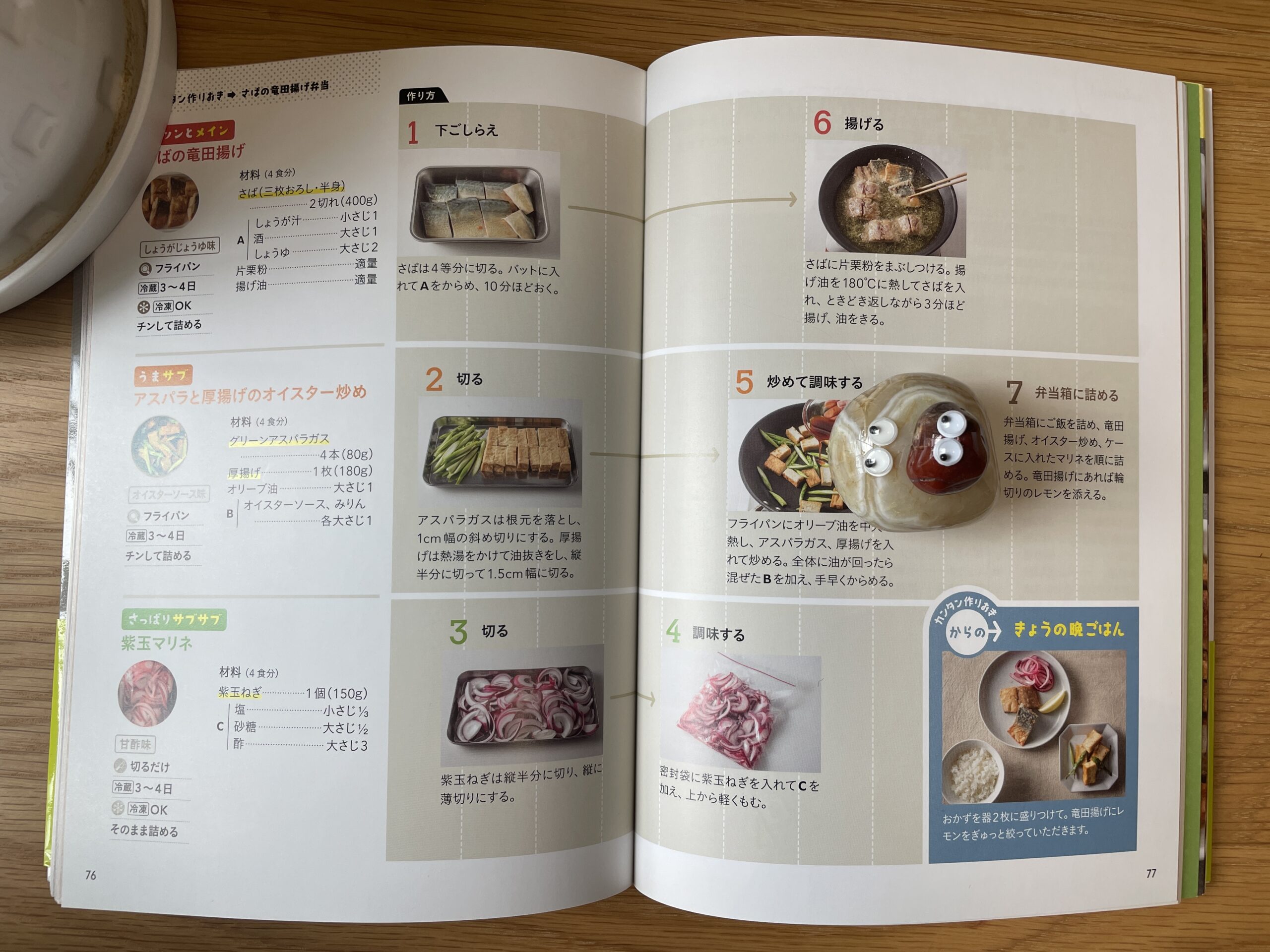 魚レシピも収録されているので、先ほど紹介した『ズボラさんの作り置き』と一緒に使うといいと思います。